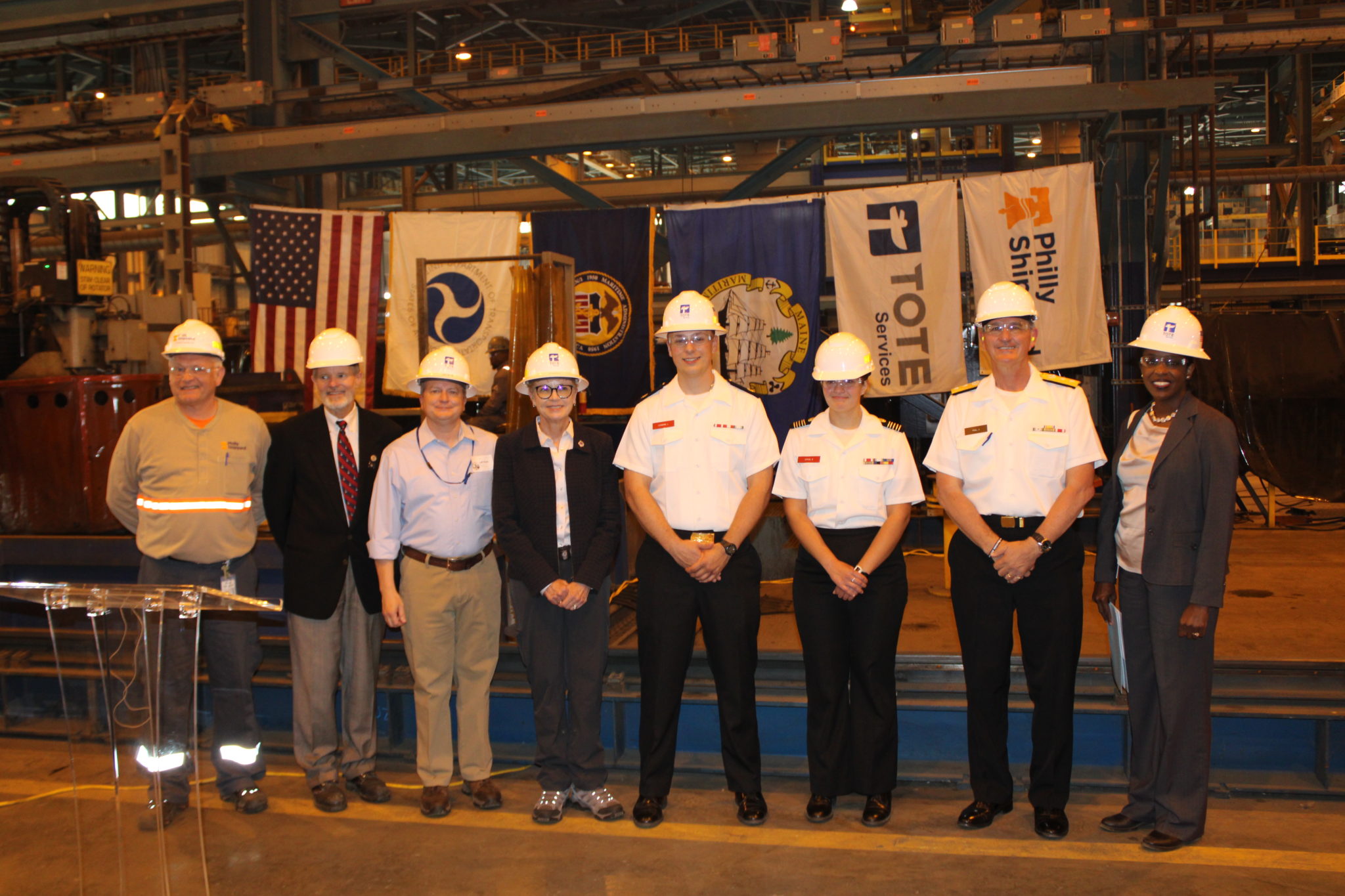 TOTE Services, LLC, and Philly Shipyard, Inc., celebrated the cutting of steel for the third National Security Multi-Mission Vessel (NSMV) destined for the Maine Maritime Academy.