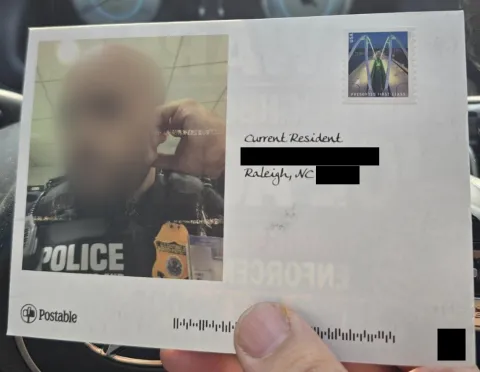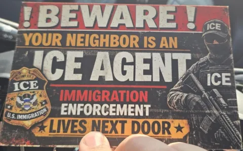 On March 23, ICE received a report about a postcard being mailed to ICE officers neighbors that read “Beware! Your neighbor is an ICE agent” with a photo of a neighboring ICE officer’s face in an attempt to doxx him.