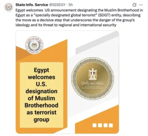 In a coordinated action, the Treasury Department’s Office of Foreign Assets Control (OFAC) designated the Egyptian Muslim Brotherhood and Jordanian Muslim Brotherhood as SDGTs, citing their material support to Hamas.