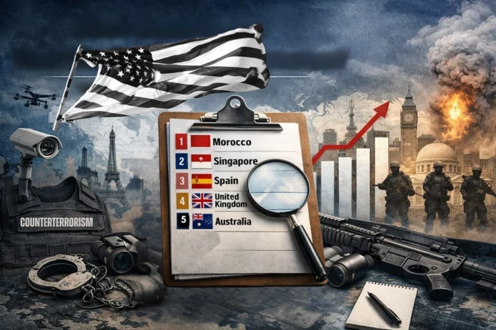 However, the United States scores only 12/20 on intelligence and legal effectiveness because it lacks preventive detention authorities and operates under high evidentiary and civil-liberty constraints, limiting early intervention compared to more preventive systems such as those in Singapore or Morocco.