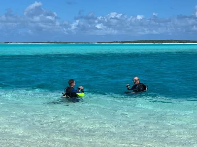 Feeling keen, David also enrolled for a PADI Open Water course in the U.K., less the ocean dives which Kevin was required by referral to complete for him after his arrival in the Bahamas. This qualification then enabled him to complete an Advanced Open Water course so he could dive deeper than 100 feet.