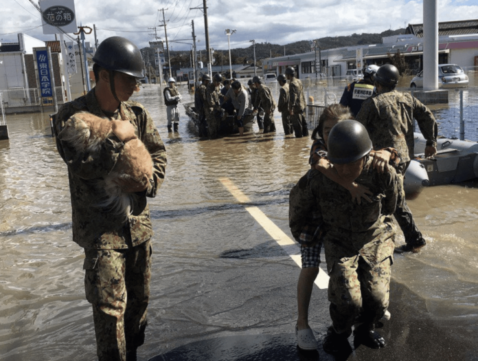 The Ministry of Land, Infrastructure, Transport and Tourism said more than 56,000 acres across eastern and northeastern parts of Japan’s main island of Honshu were flooded by the super typhoon. More than 100 river embankments collapsed during and immediately after the storm struck last weekend, causing 33,000 homes to flood. Almost 2,000 houses were partially or totally destroyed.