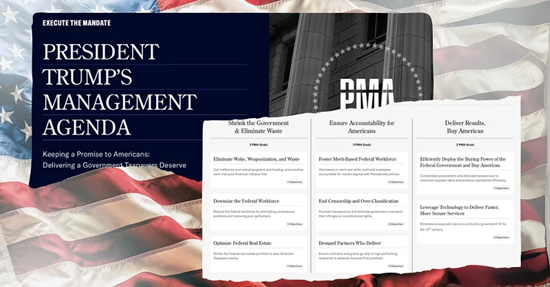 The Trump administration issued its President’s Management Agenda on December 8, 2025, outlining plans of “delivering a government taxpayers deserve.” The agenda was accompanied by a memo from the Office of Management and Budget (OMB) Director Russell T. Vought and Deputy Director for Management Eric M. Deland, as it is a statutory requirement for OMB to coordinate priority goals for improving federal government performance and management during the first year of a presidential term