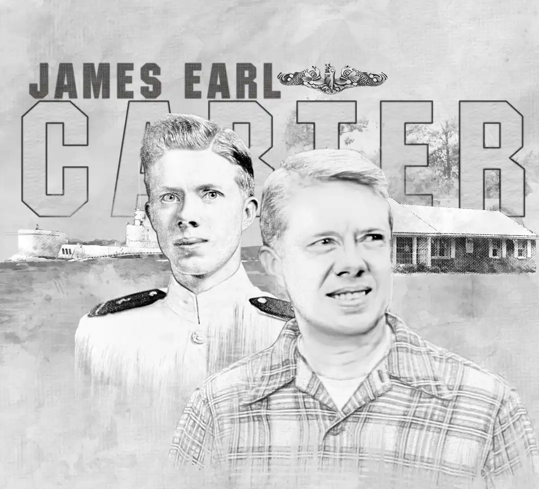 President Jimmy Carter served as the 39th president of the United States from 1977-1981. He graduated from the United States Naval Academy in 1946 and served as a submariner from 1946-1953 when he left active duty service as a lieutenant and continued his service as a reservist until 1961. The Seawolf-class submarine USS Jimmy Carter (SSN 23) and the newly renamed Carter Hall are named after him.