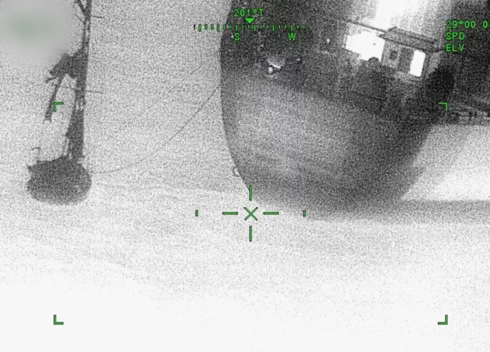 A Coast Guard Air Station Elizabeth City HC-130 Hercules aircrew and motor tanker Radiant Pride’s crew rescued three people earlier this week from a sailing vessel taking on water, 450 miles east of Daytona Beach.