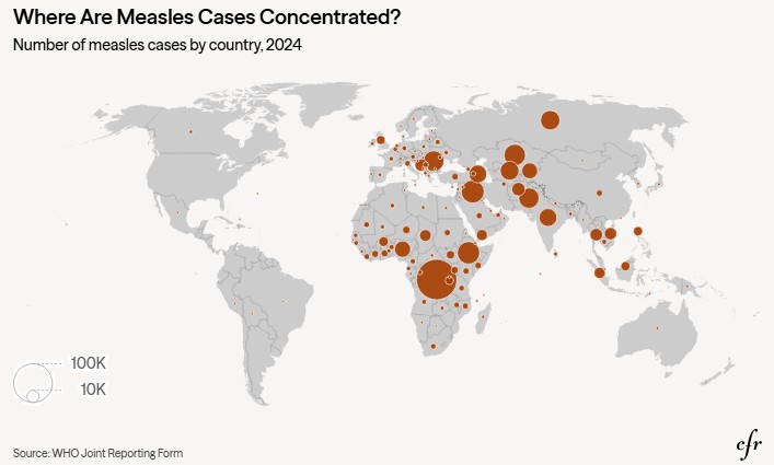 In recent years, major measles outbreaks have occurred in countries including Ethiopia, the DRC, Iraq, and Kazakhstan, with tens of thousands of cases recorded.