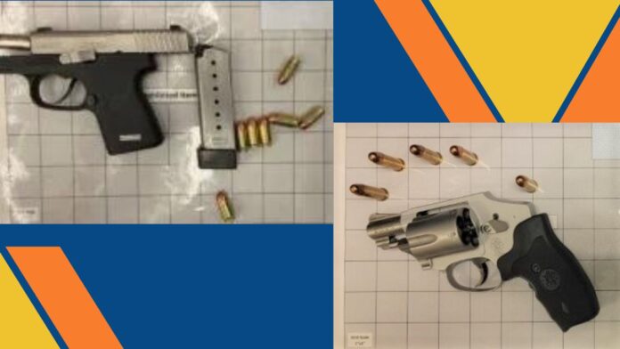 The Franklin, Pa., man was caught with a .380 handgun loaded with seven bullets. The Ohio man was caught with a .38 caliber pistol with five bullets.