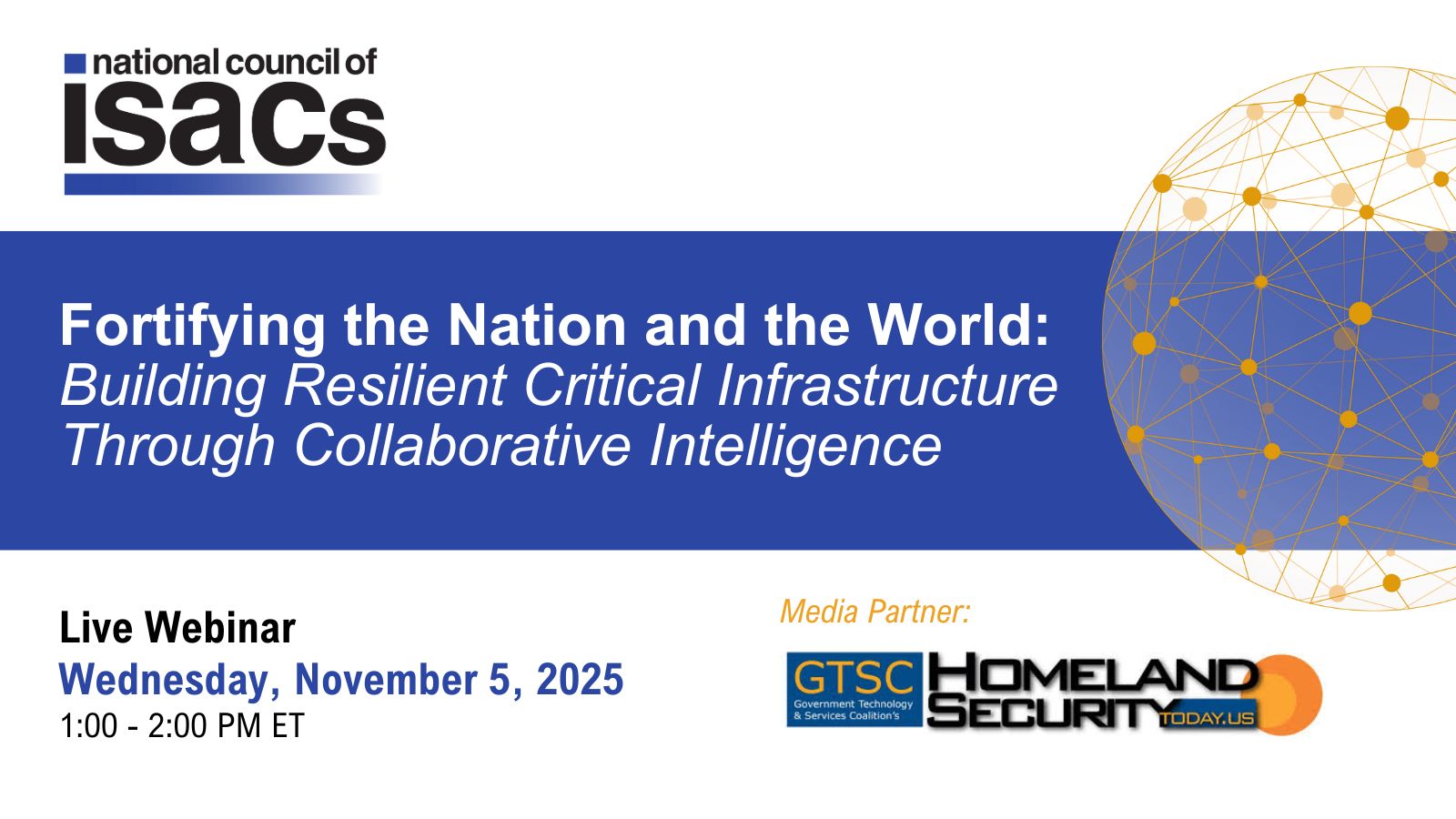 The National Council of ISACs (NCI) is set to host a webinar on Wednesday, November 5 at 1 PM ET to highlight how Information Sharing and Analysis Centers (ISACs) strengthen the security and resilience of our nation’s critical infrastructure.
